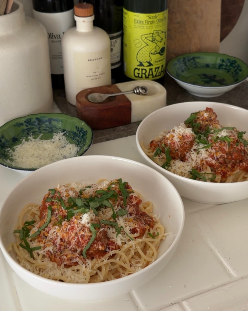 Can’t go wrong with a classic! This spaghetti and meatball recipe is perfect for a casual weeknight or at-home date night. It’s comforting, sharable, and feels a little fancy without being complicated. What more could you want in a dinner?!