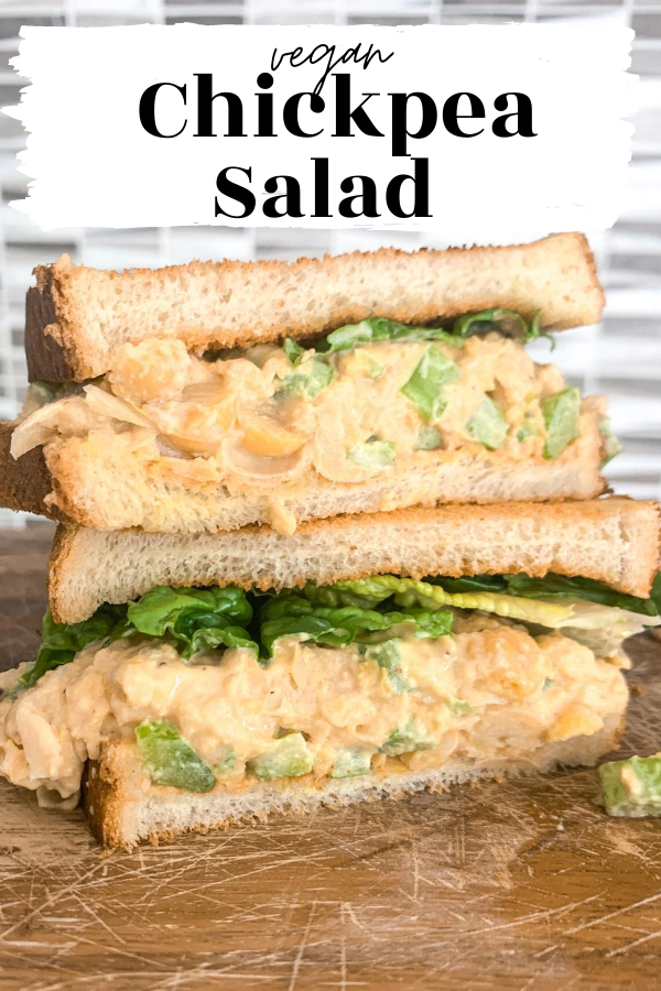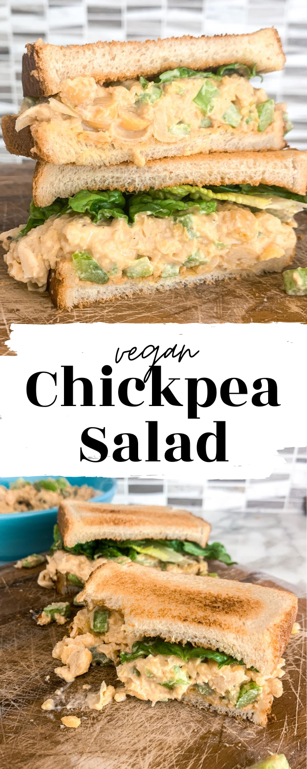 This Vegan Chickpea Salad is quick and easy for the most tasty, no hassle lunch! Serve it on bread, lettuce cups, or over a salad for a simple meatless meal.