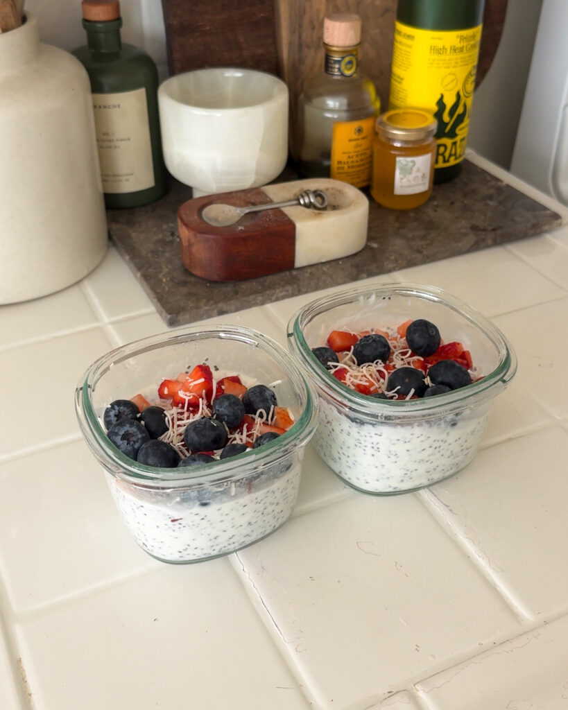 When I want something sweet and refreshing, I always reach for this collagen chia pudding. It’s protein-packed from the yogurt and collagen and has the best creamy texture after setting overnight.