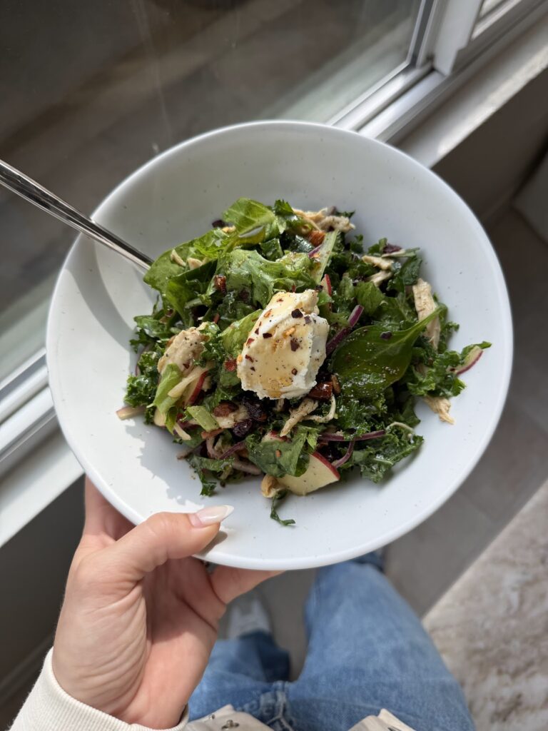 Over the years, this salad has gone through a few different versions. If you have been ordering it for a long time, you might remember the older Drake Goat Cheese and Beet version. That one had my heart for a while. The more recent seasonal versions lean into apples, mixed greens, and that signature sweet and tangy balance, but still keep some of the OG elements that I love.